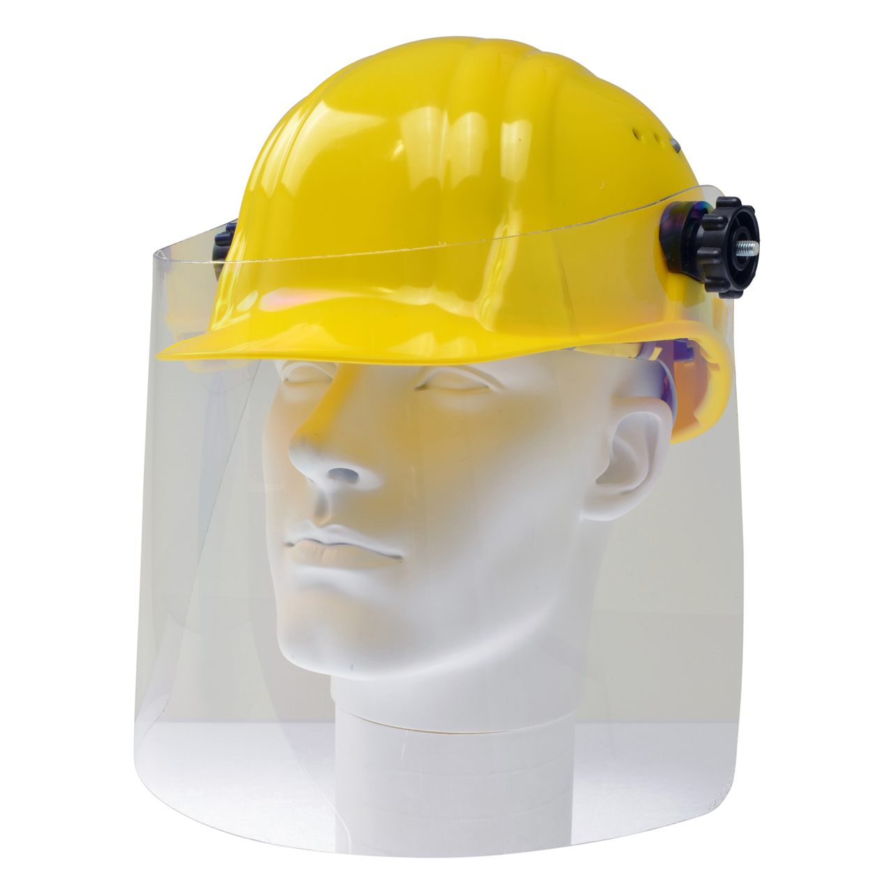 Arbeitshelm, gelb, mit klappbarer PET-G Scheibe, klar, 460 x 240 mm