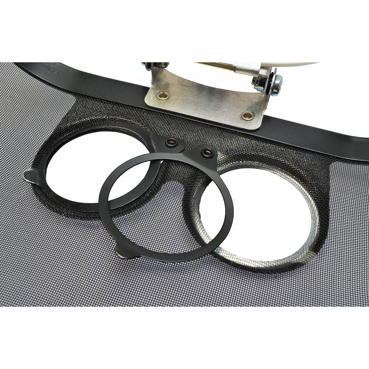 - aus verzinktem Stahldrahtgewebe, innen schwarz matt lackiert, umlaufend mit Aluminiumrahmen eingefasst