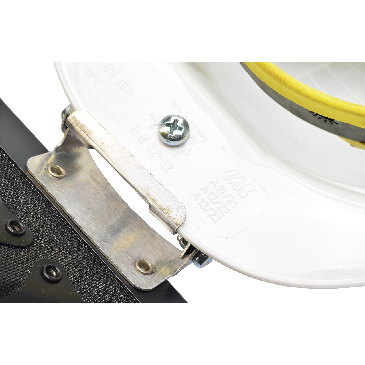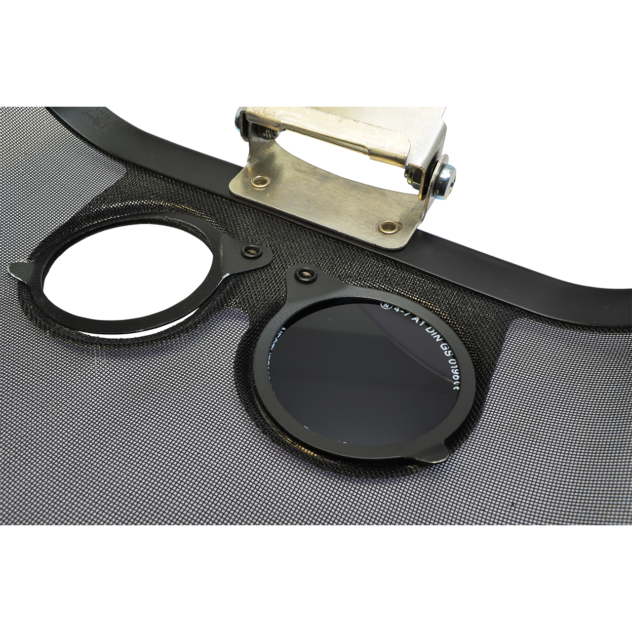 - Befestigung am Helm mittels Schraube und Flügelmutter