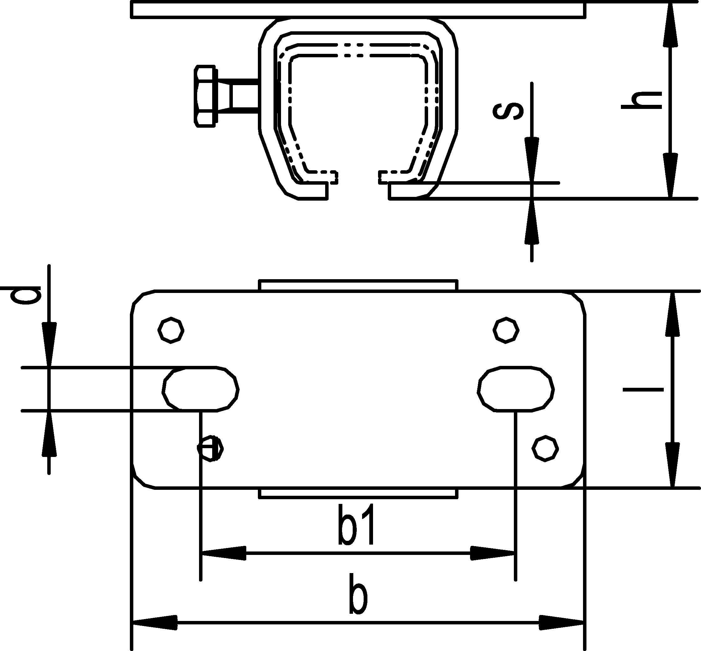 - Maße: s = 2 mm / h = 33 mm / d = 8,4 mm / I = 40 mm / b1 = 50 mm / b = 68 mm