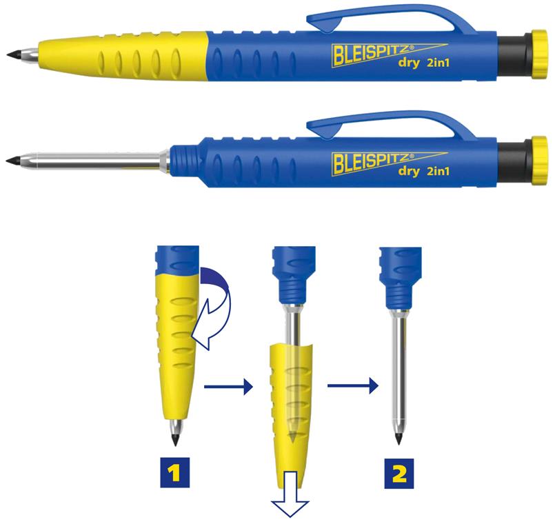 Produktinformationen "DRY 2in1 Tieflochmarker, inkl. 6x Graphit Universalmine & Spitzer"