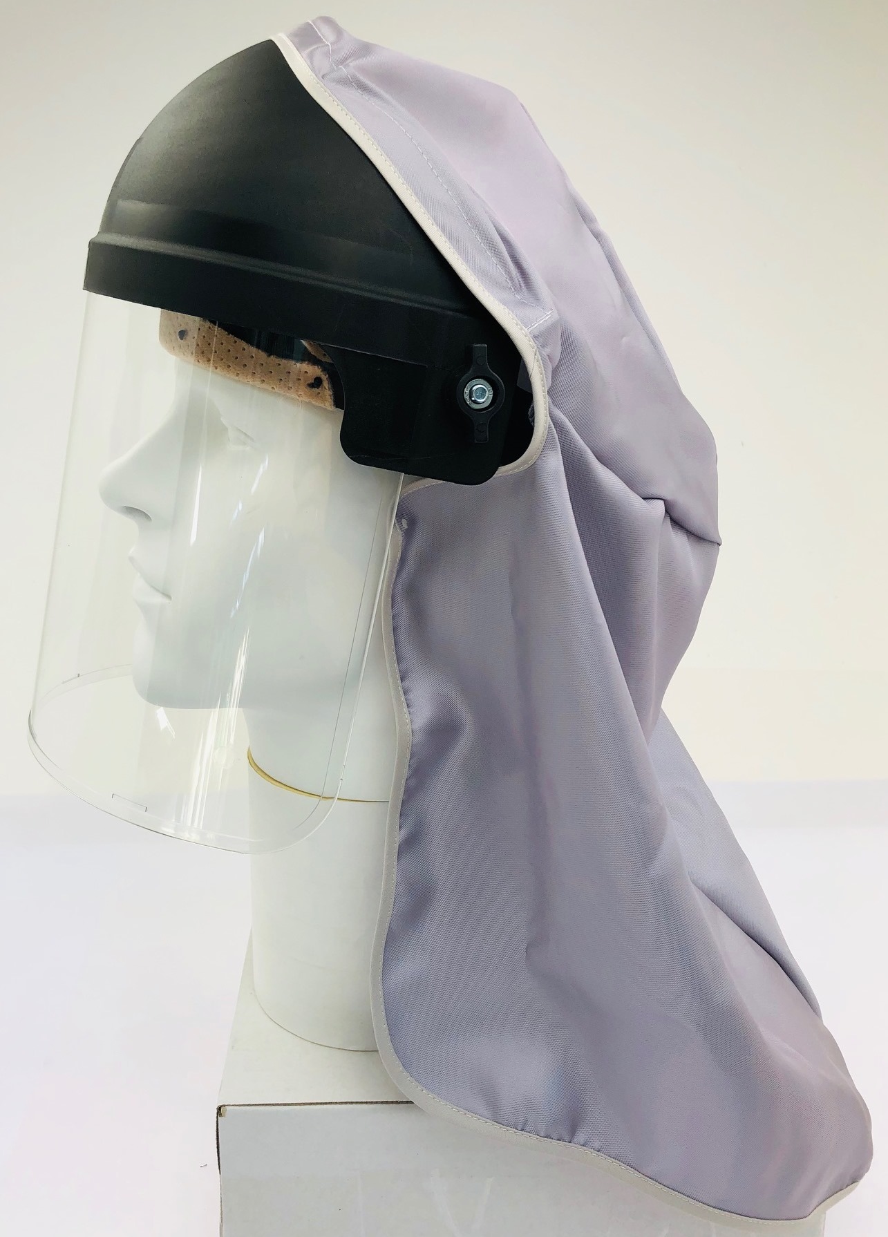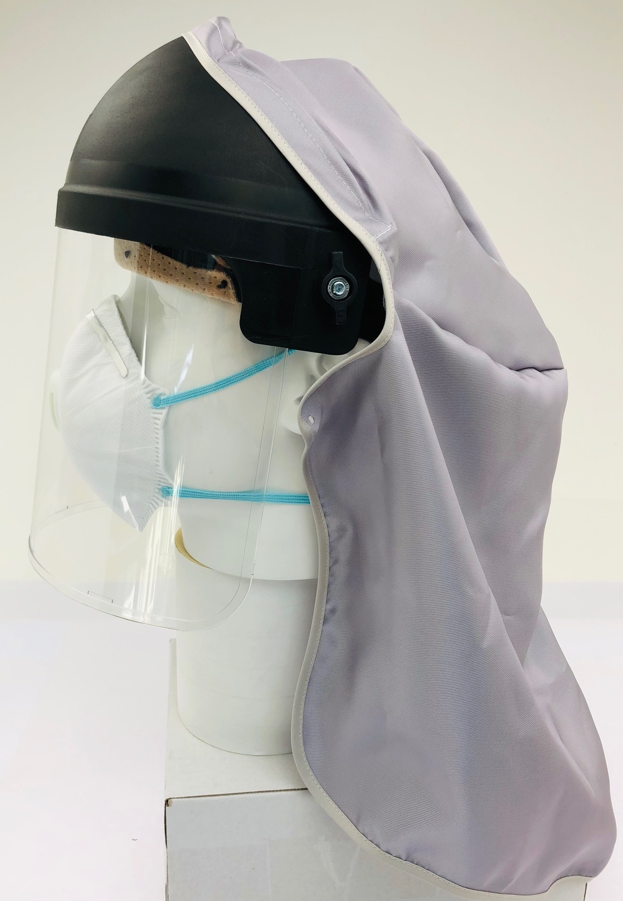 Gesichtsschutz, klar, Kopfhalterung mit klappbarer PC Scheibe, mit Kopftuch aus Viskose