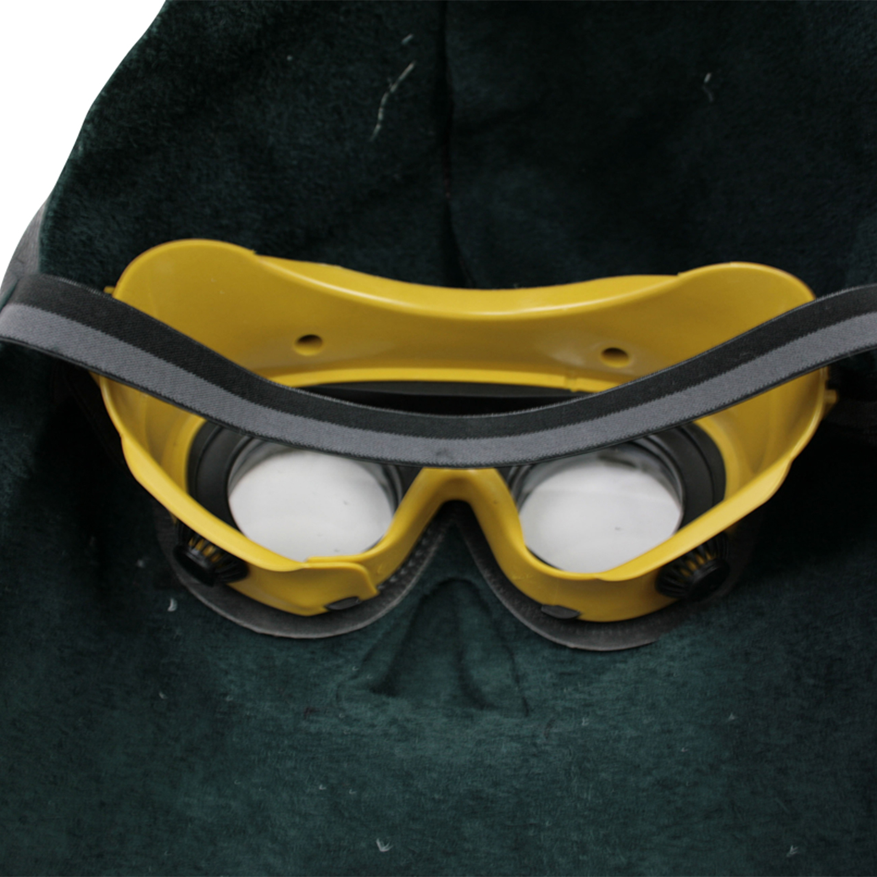 - Schweißer-Kopfschutzhaube aus schwarzem Vollleder