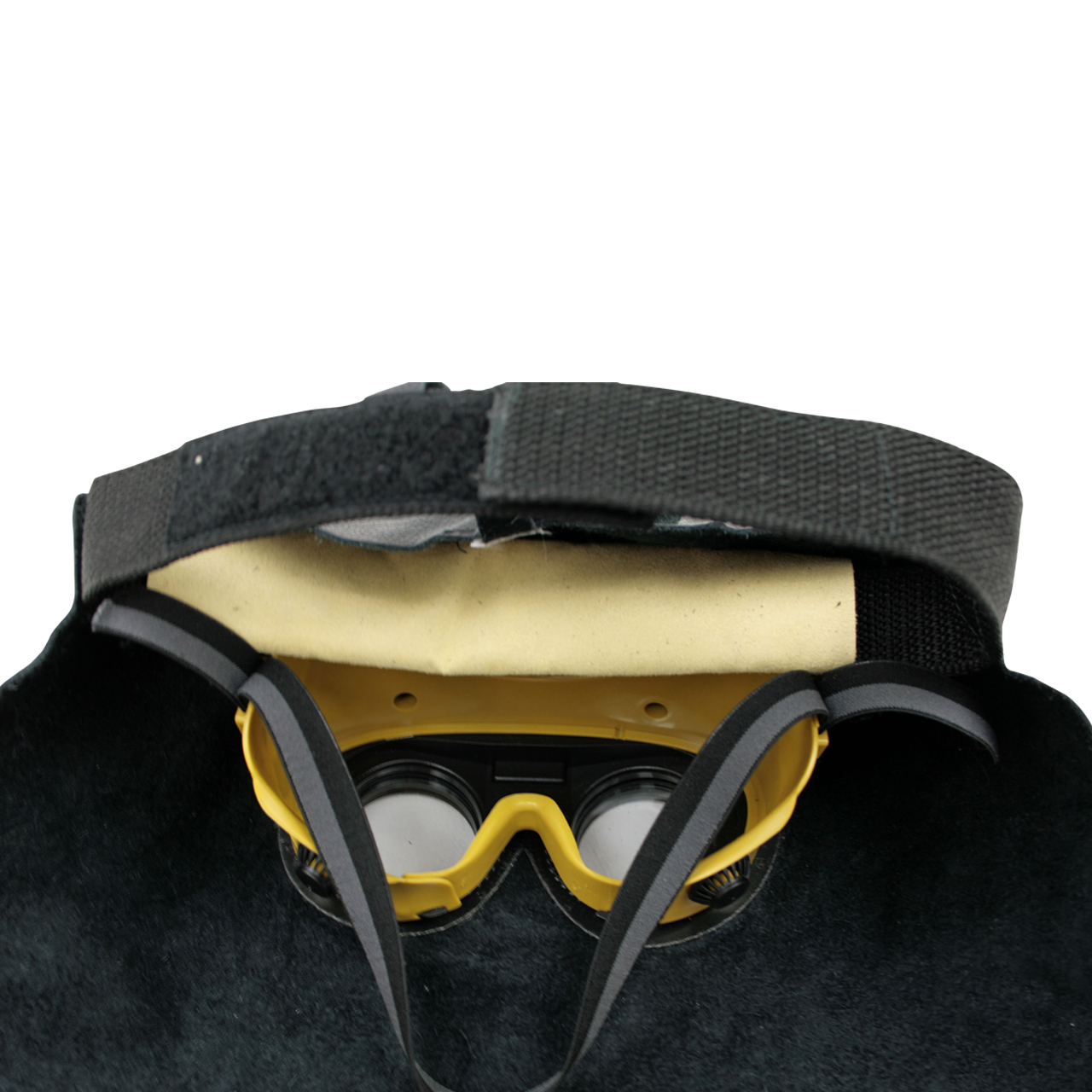 - Schweißer-Kopfschutzhaube aus schwarzem Vollleder