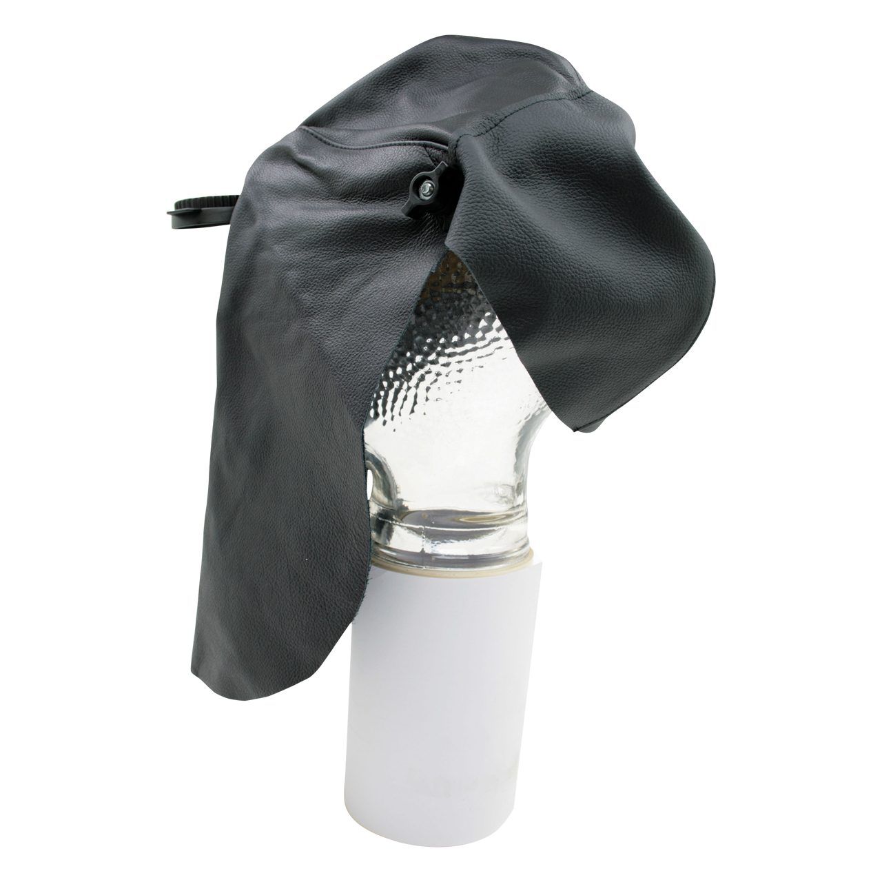 - Schweißer-Kopfschutzhaube aus schwarzem Vollleder