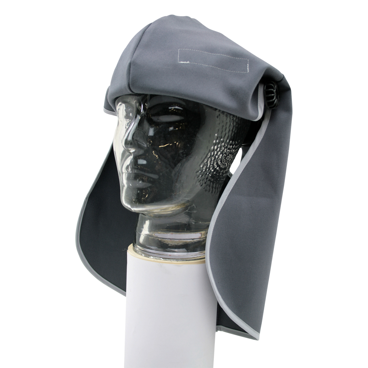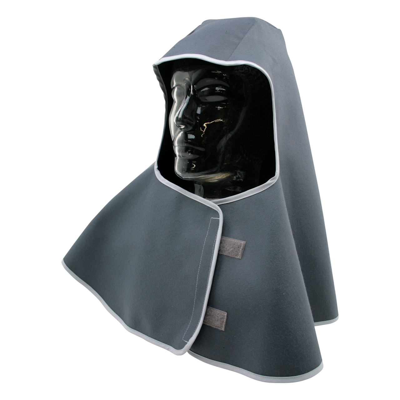Kopfschutztuch aus SECAN, mit Nackenschutz, vorne Klett, grau, schwer enflammbar