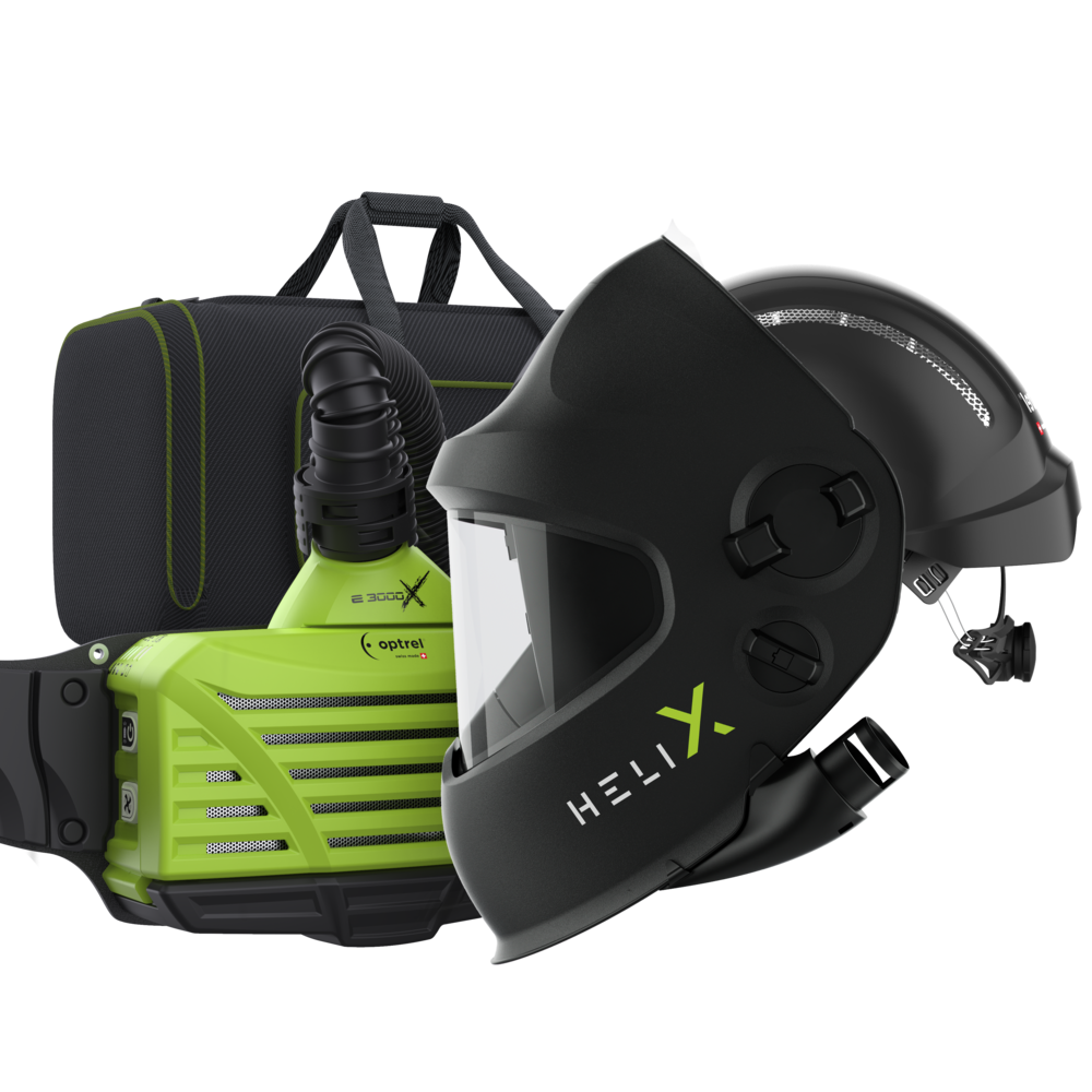 Wählen Sie Ihre optimale Kombination aus optrel e3000X und den neuesten Helmen der sphereX, HELIX, panoramaxx oder crystal Serie – für kompromisslosen Schutz, klare Sicht und gesunde Atemluft.