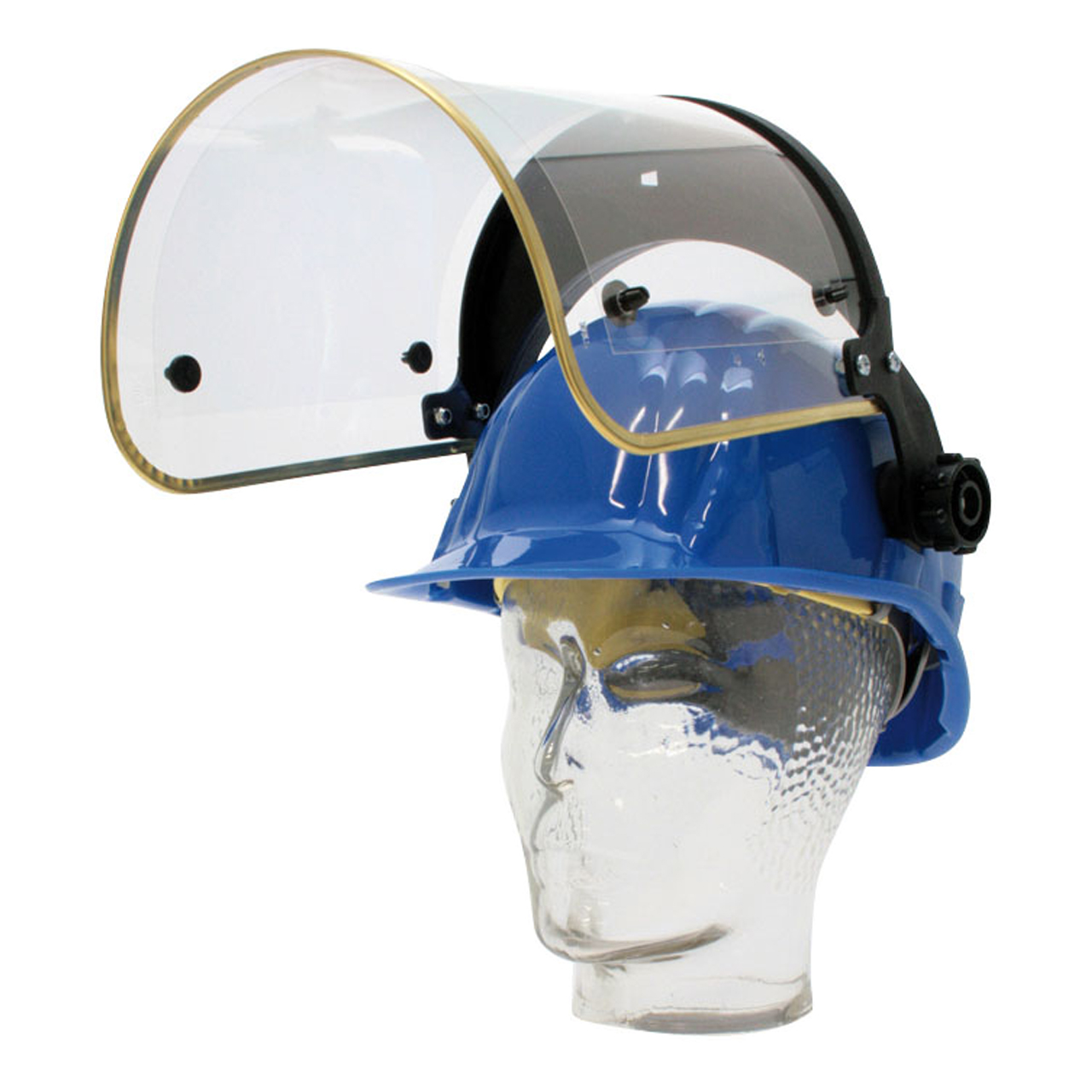 Arbeitshelm, blau, mit klappbarer PET-G Scheibe, klar, 460 x 240 mm