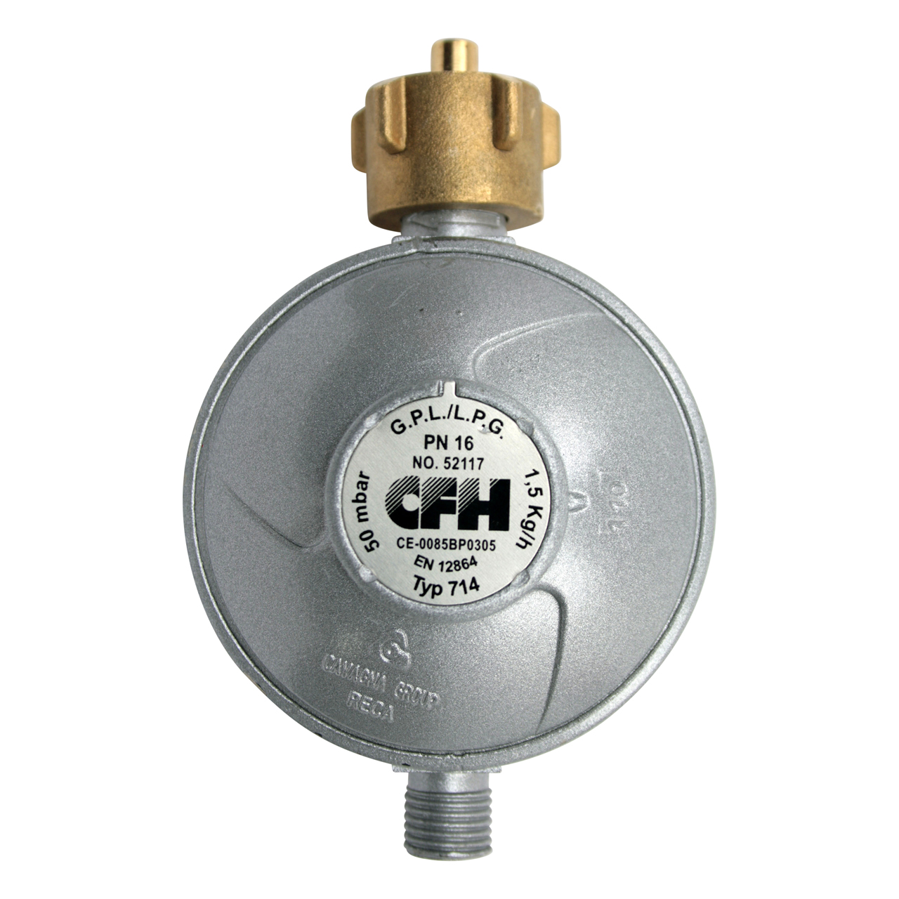 Propangas Regler, fest eingestellt 50 mbar, 1 kg/h für Campingflaschen