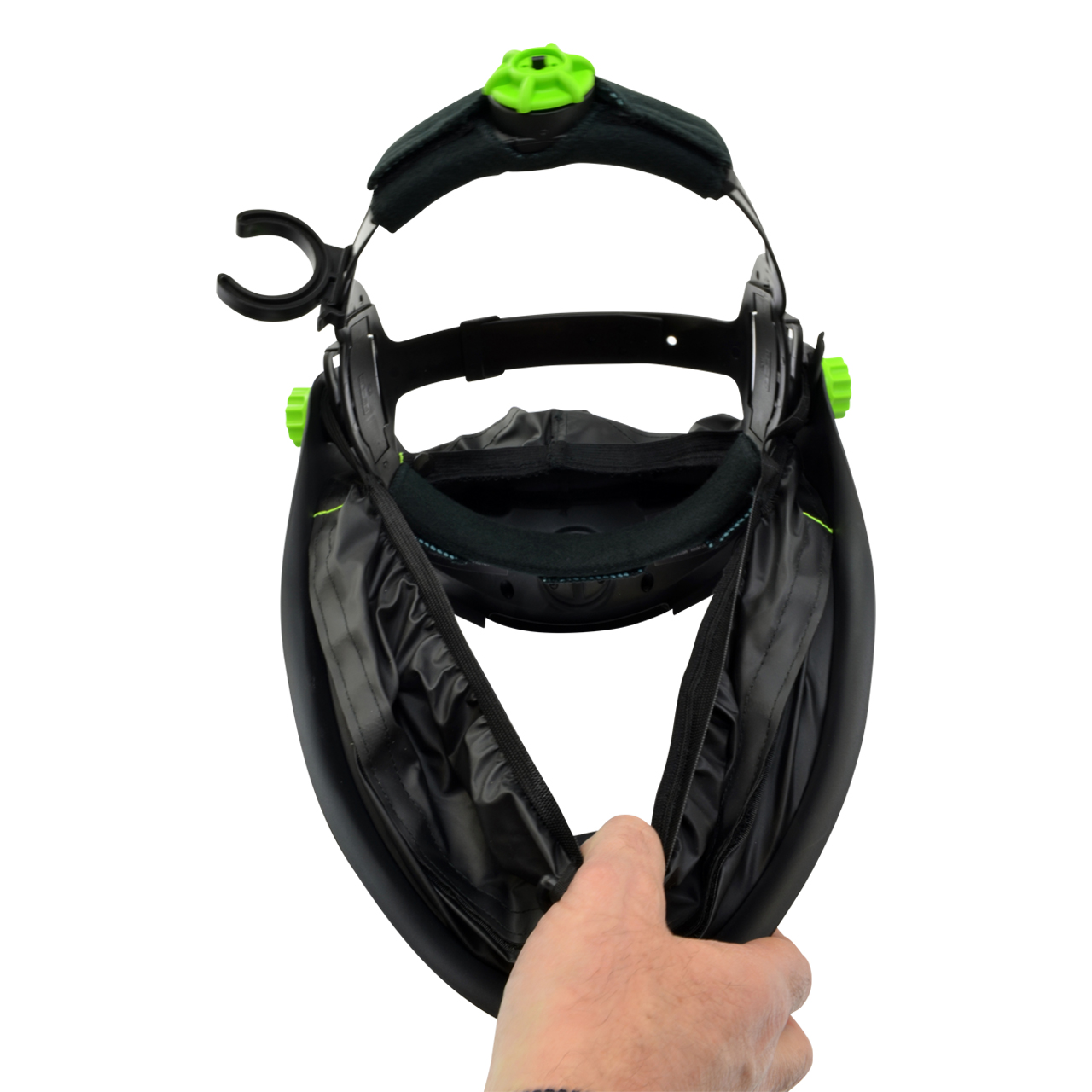 Uneingeschränkte und klare Sicht auf den Arbeitsplatz, gefilterte und klare Luft mit individuell einstellbarer Luftzufuhr machen den clearmaxx zum einzigartigen Gesichts- und Atemschutzsystem.