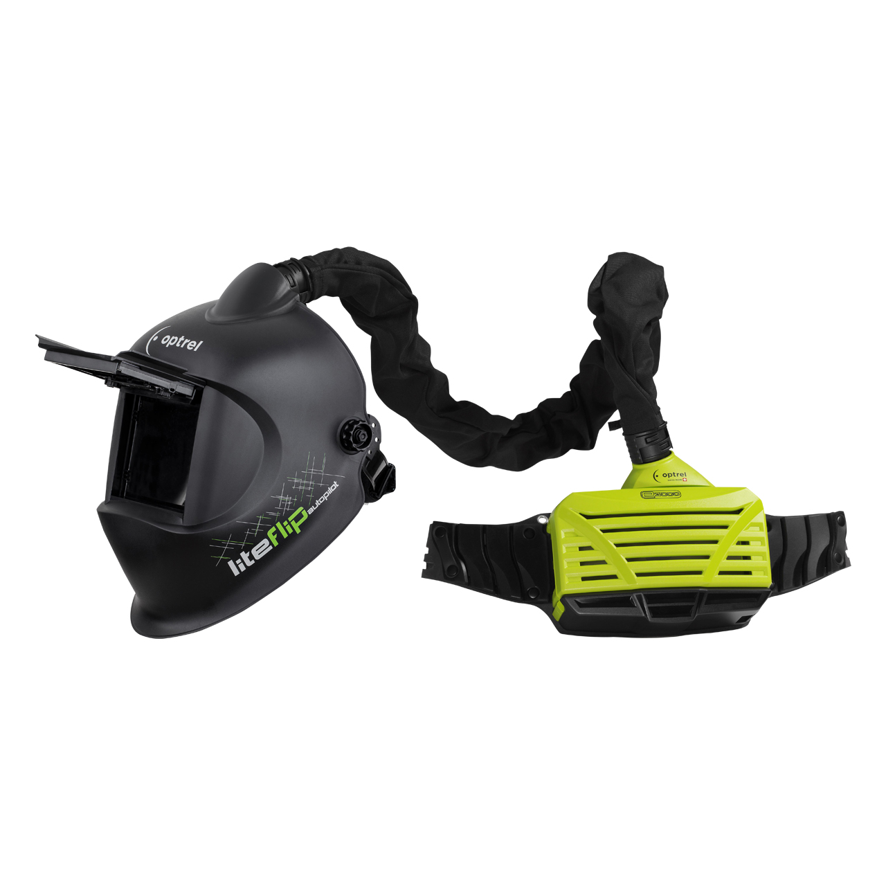 Produktinformationen "optrel® liteflip, schwarz, DIN 4/5-14, Frischlufthelm mit e3000X"