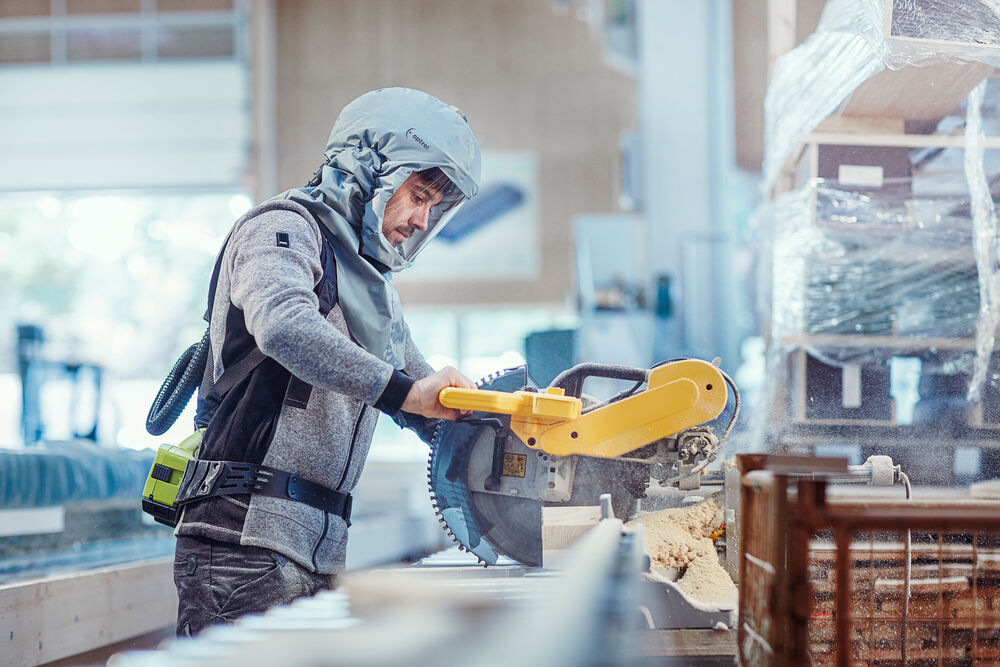 - die lange Version vom SOFTHOOD deckt bei erhöhter Staubbelastung zusätzlich den ganzen Hals- und Schulterbereich ab.