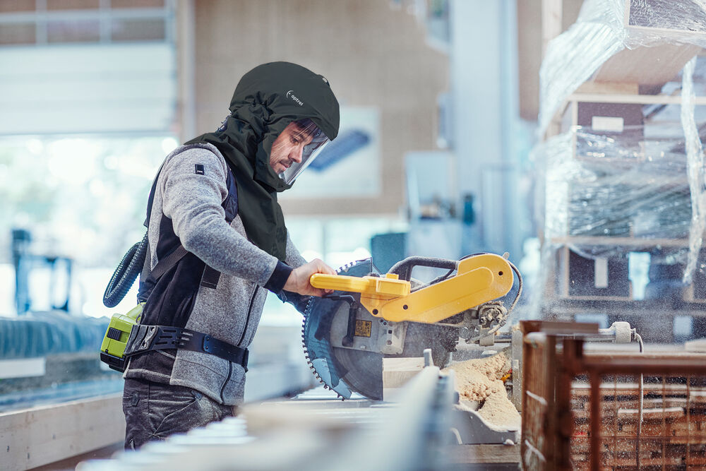 - die lange Version vom SOFTHOOD deckt bei erhöhter Staubbelastung zusätzlich den ganzen Hals- und Schulterbereich ab.