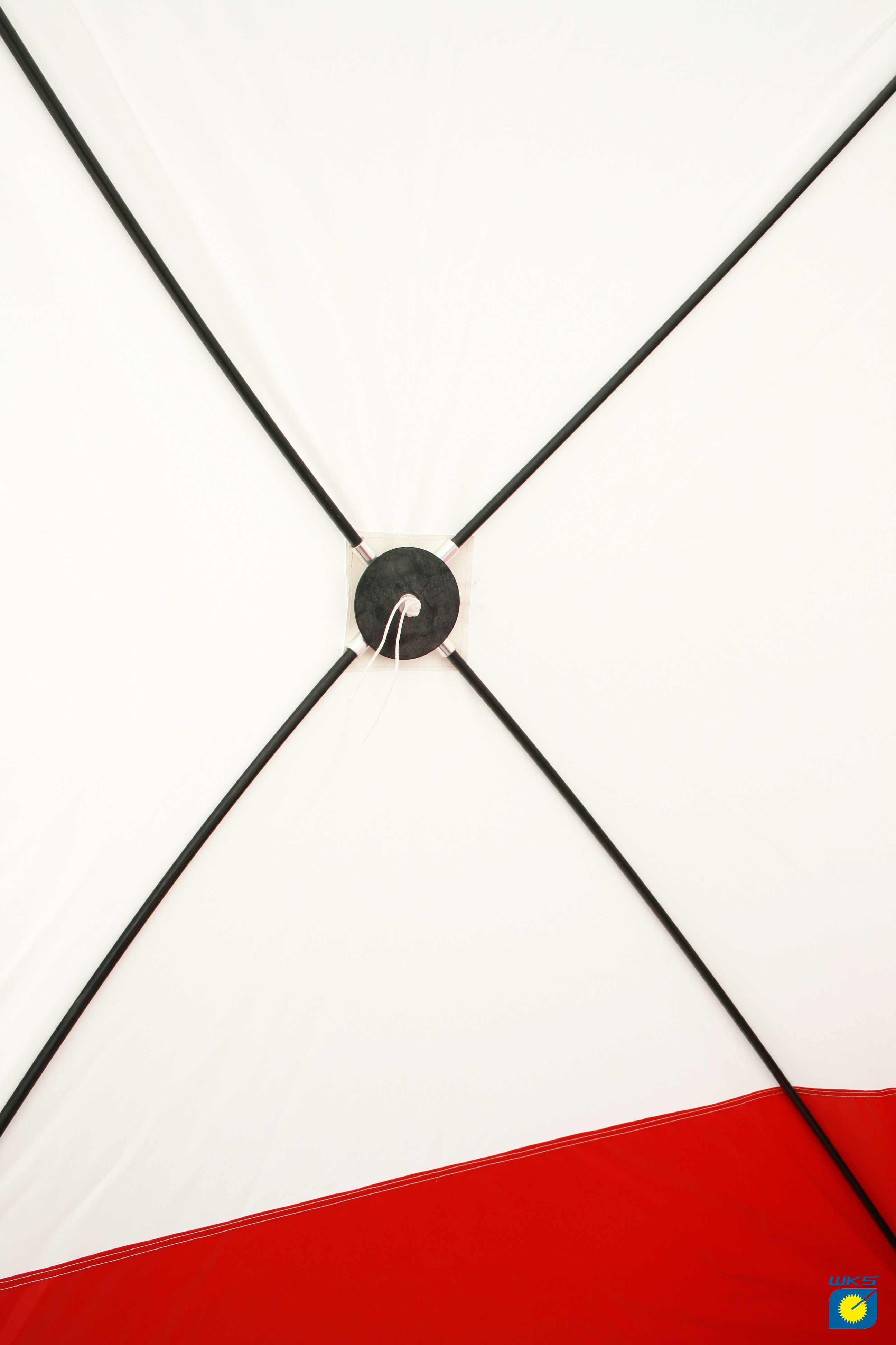 Pop Up Zelt WA21, Flachzelt, schwer entflammbar, weiß/rot, 210 x 210 x 200 cm