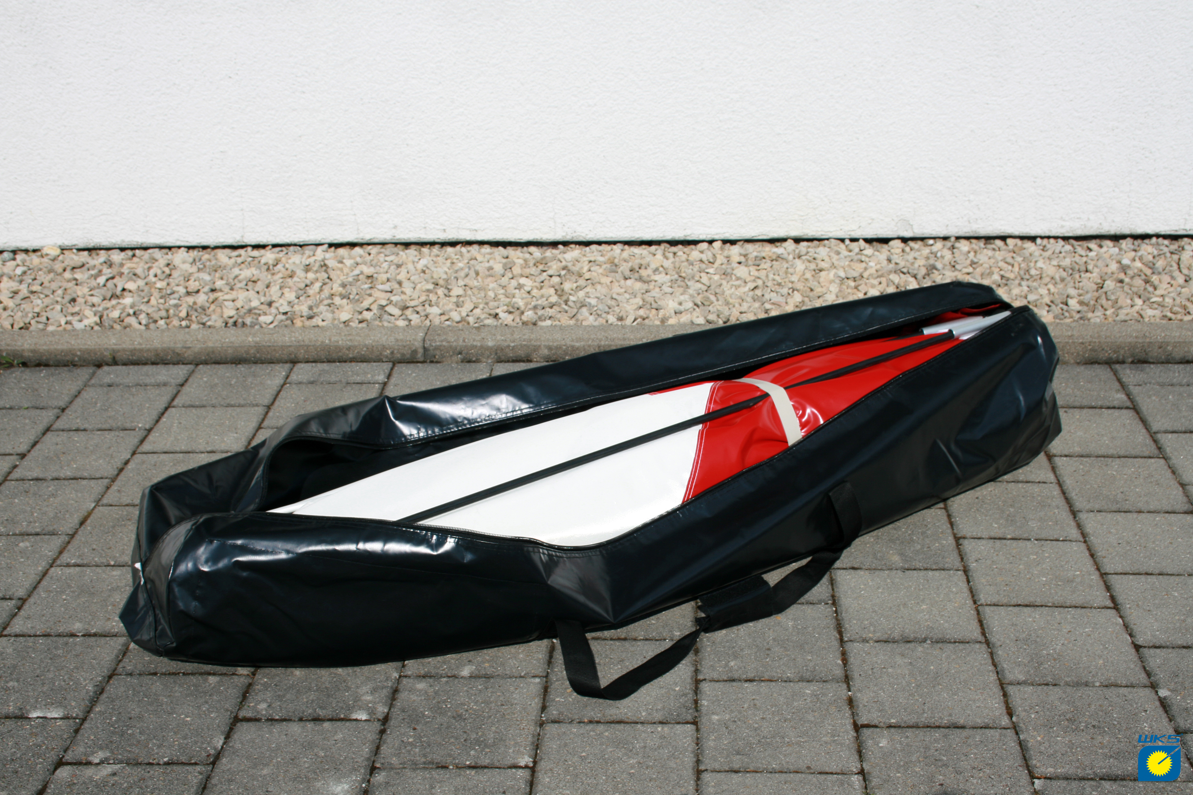 - Rückseite läßt sich mittels Reisverschluß bis zum Rückhalter öffnen