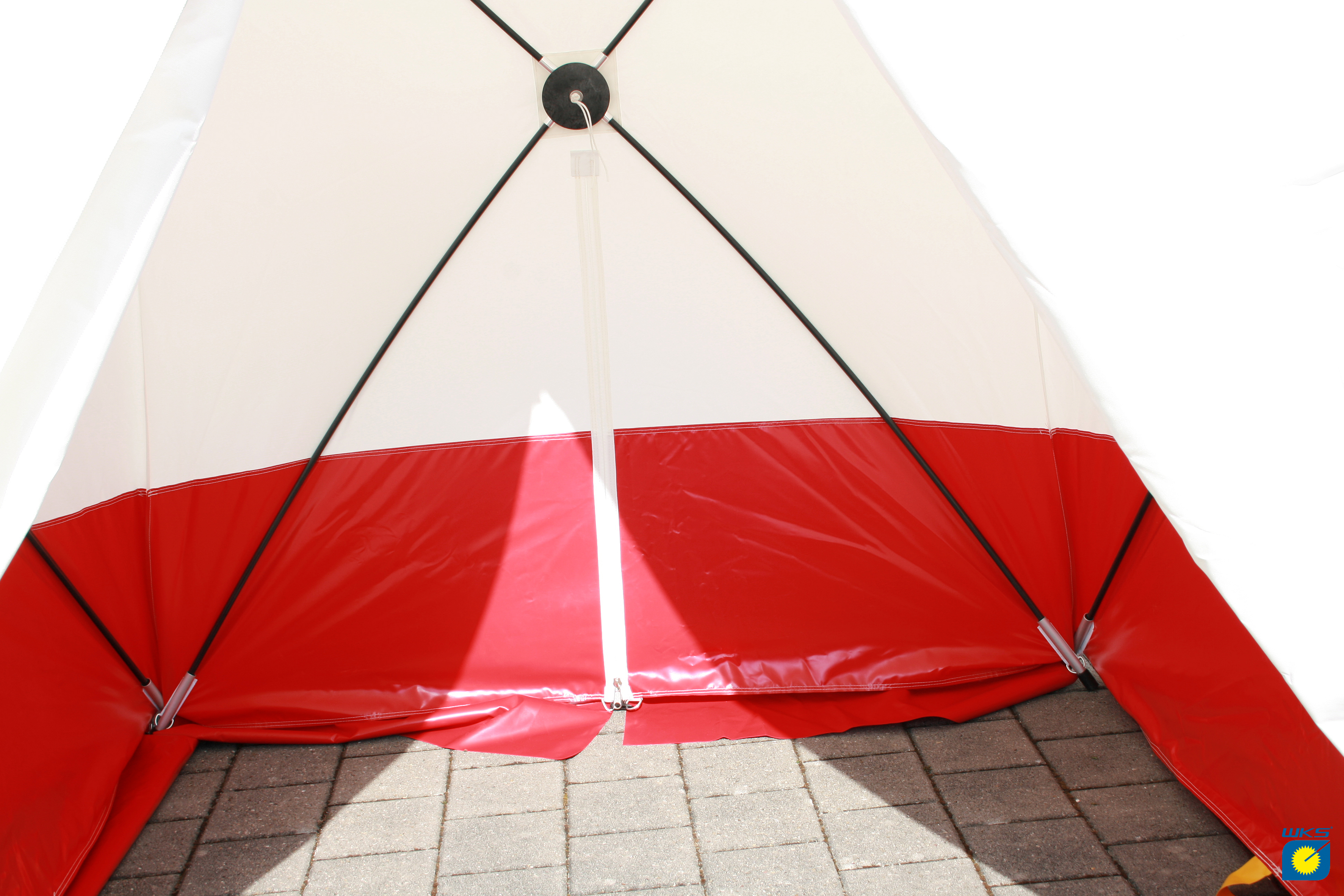 Pop Up Zelt WK18, Spitzzelt, schwer entflammbar, weiß/rot, 180 x 170 x 165 cm