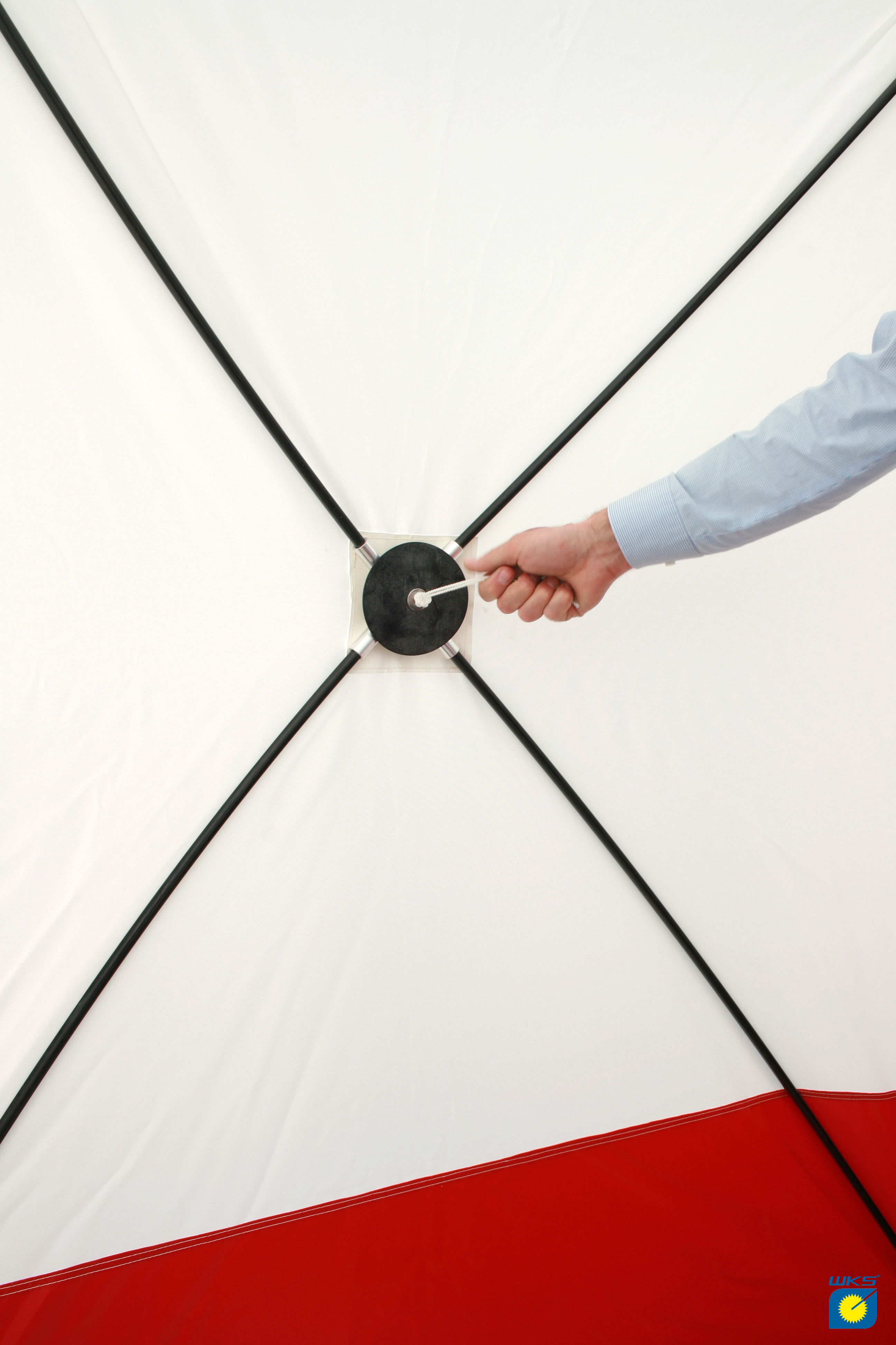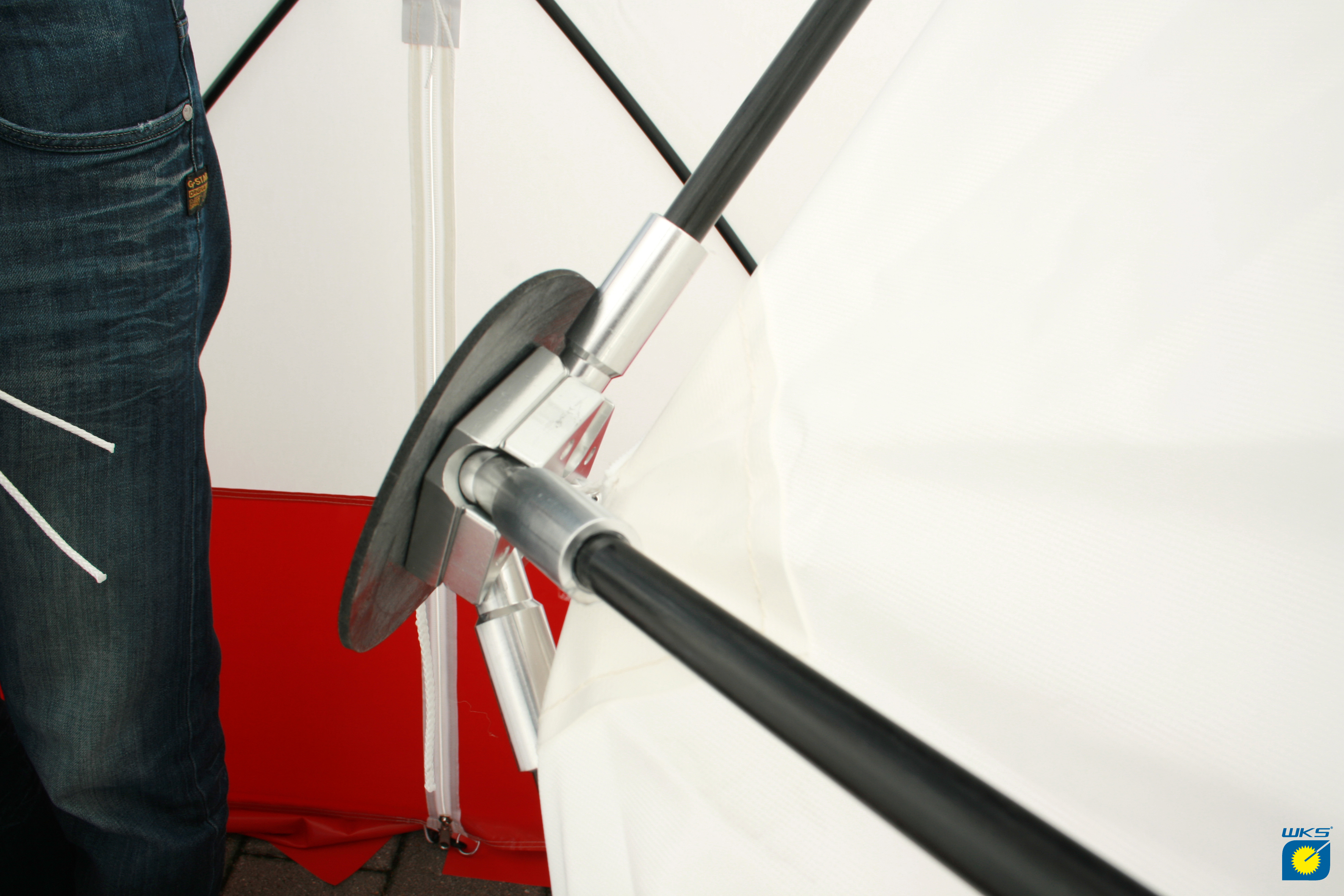 Pop Up Zelt WK25, Spitzzelt, schwer entflammbar, weiß/rot, 250 x 200 x 190 cm