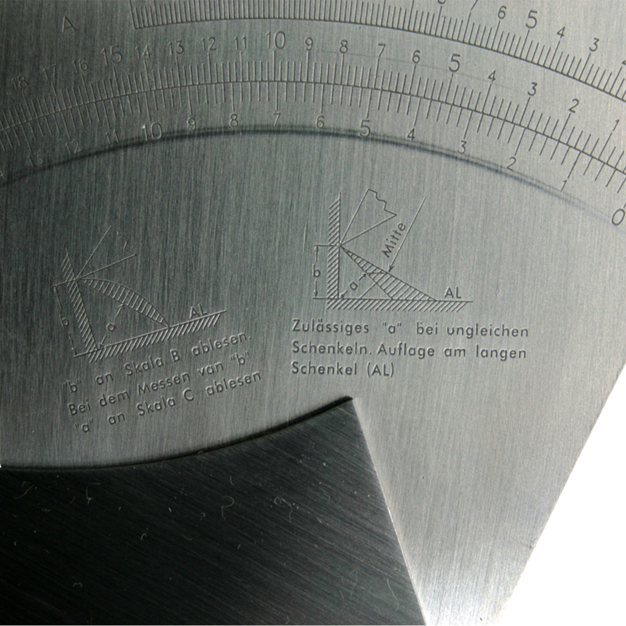 - Messerkzeug zur einfachen und schnellen Kontrolle der Schweißnahtabmessungen