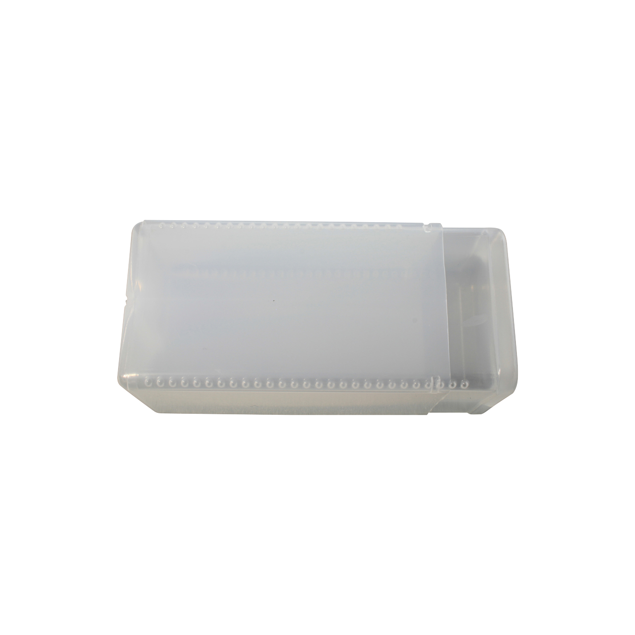 Schiebebox aus milchig transparentem PP (Polypropylen) Kunststoff.