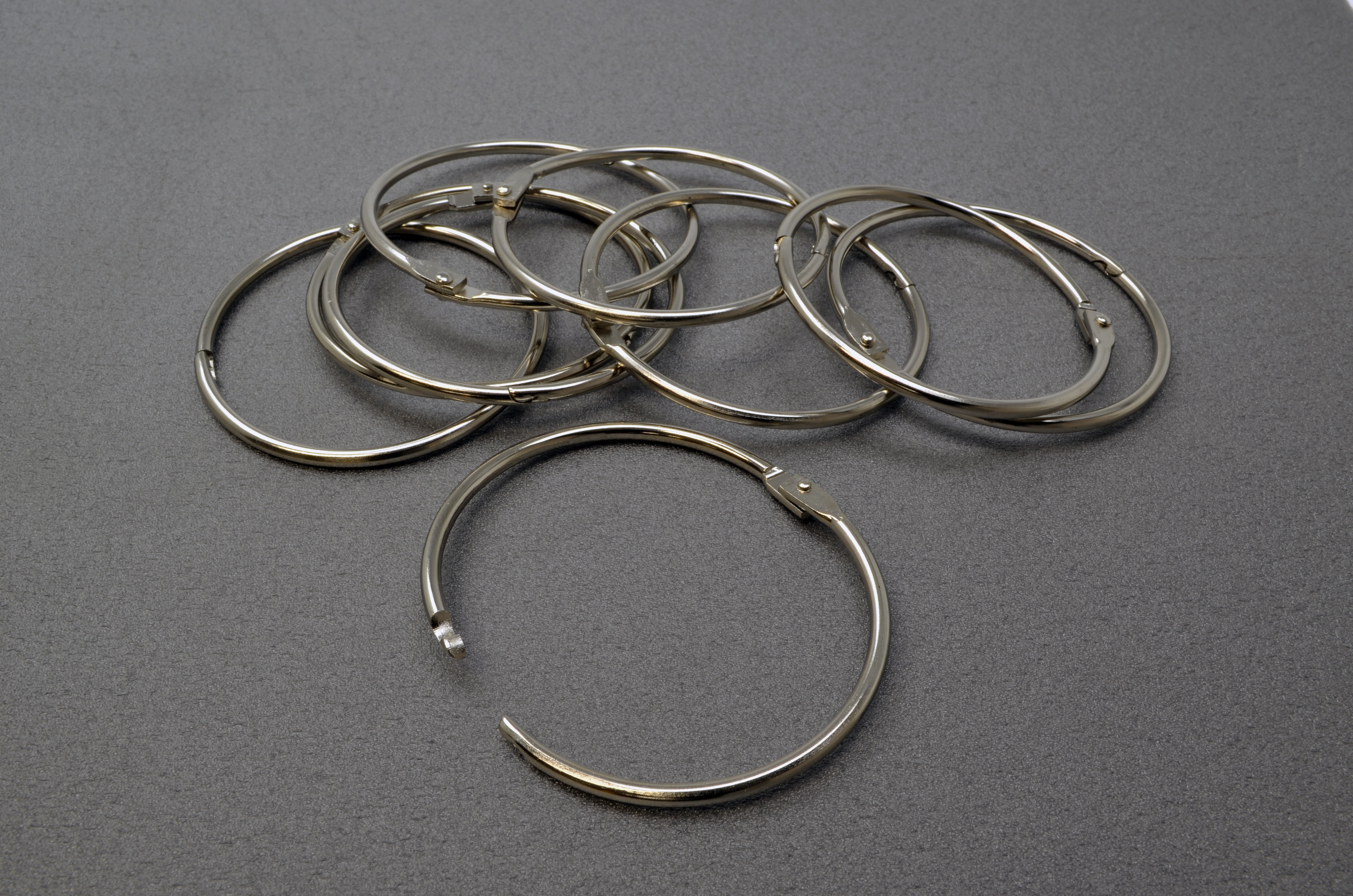 Aufhängering für Vorhänge aus vernikeltem Stahldraht mit Gelenk und Schnellverschluß. Innendurchmesser in geschlossenem Zustand 60 mm.