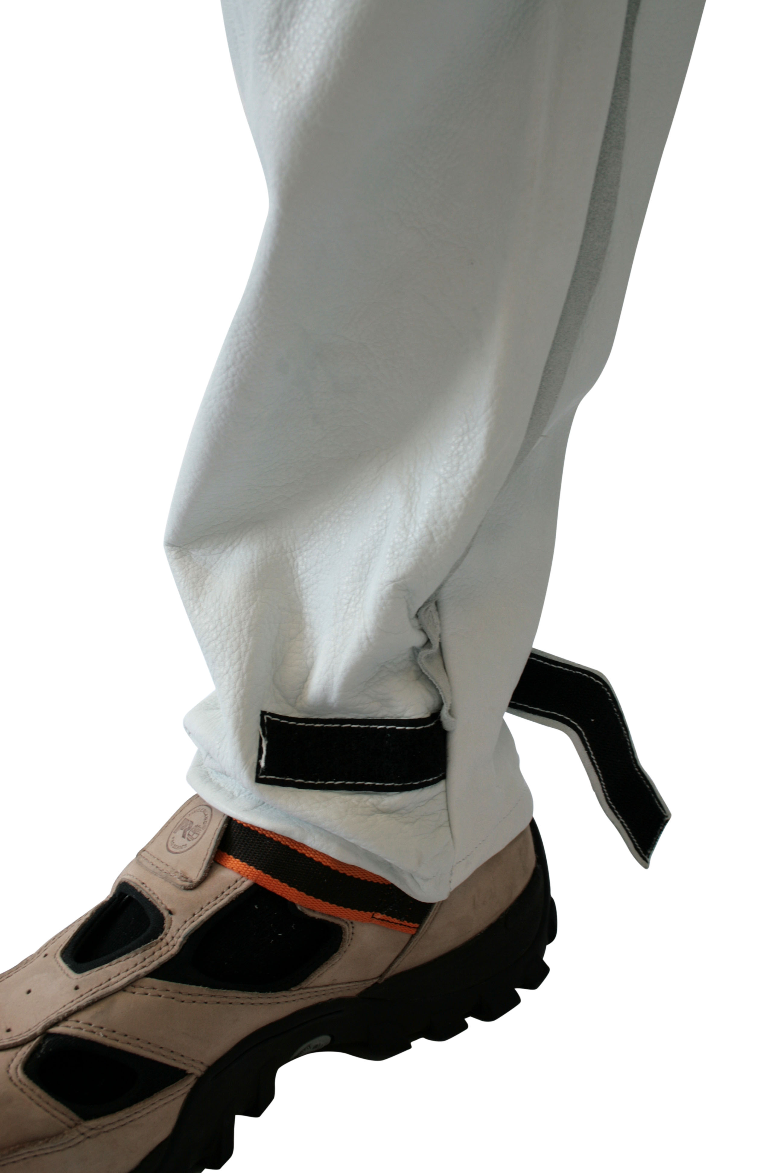 Sandstrahloverall aus strapazierfähigem Voll-Leder. Rücken aus Baumwoll-Leinengewebe.