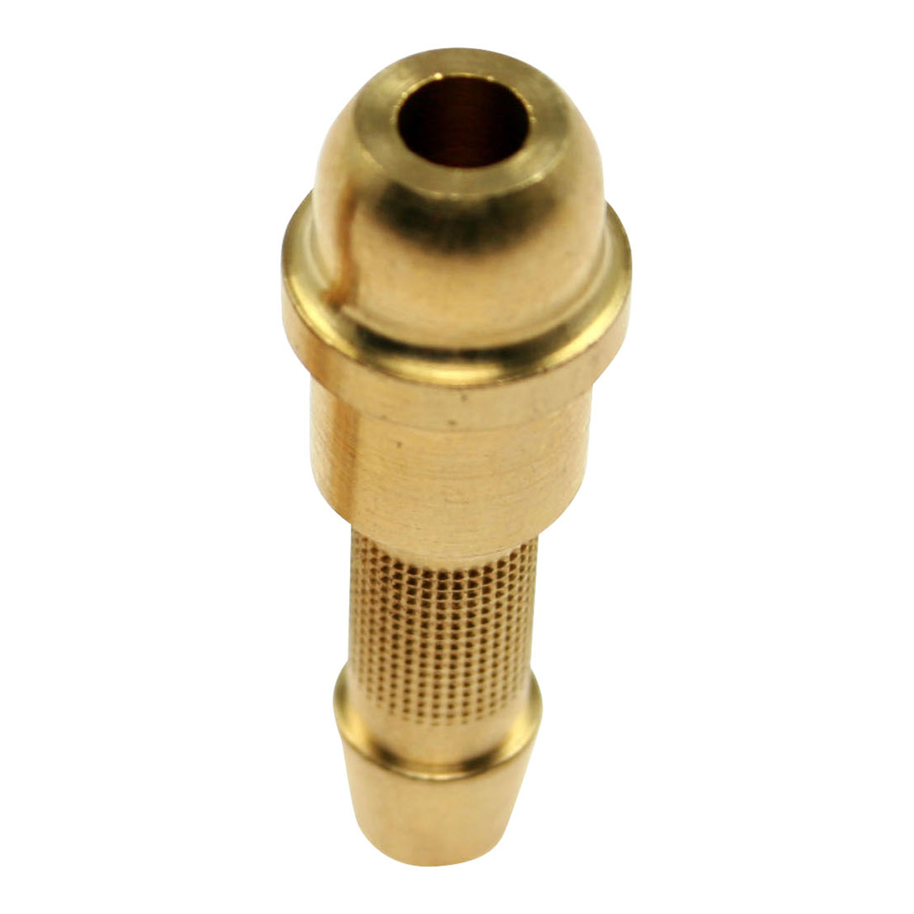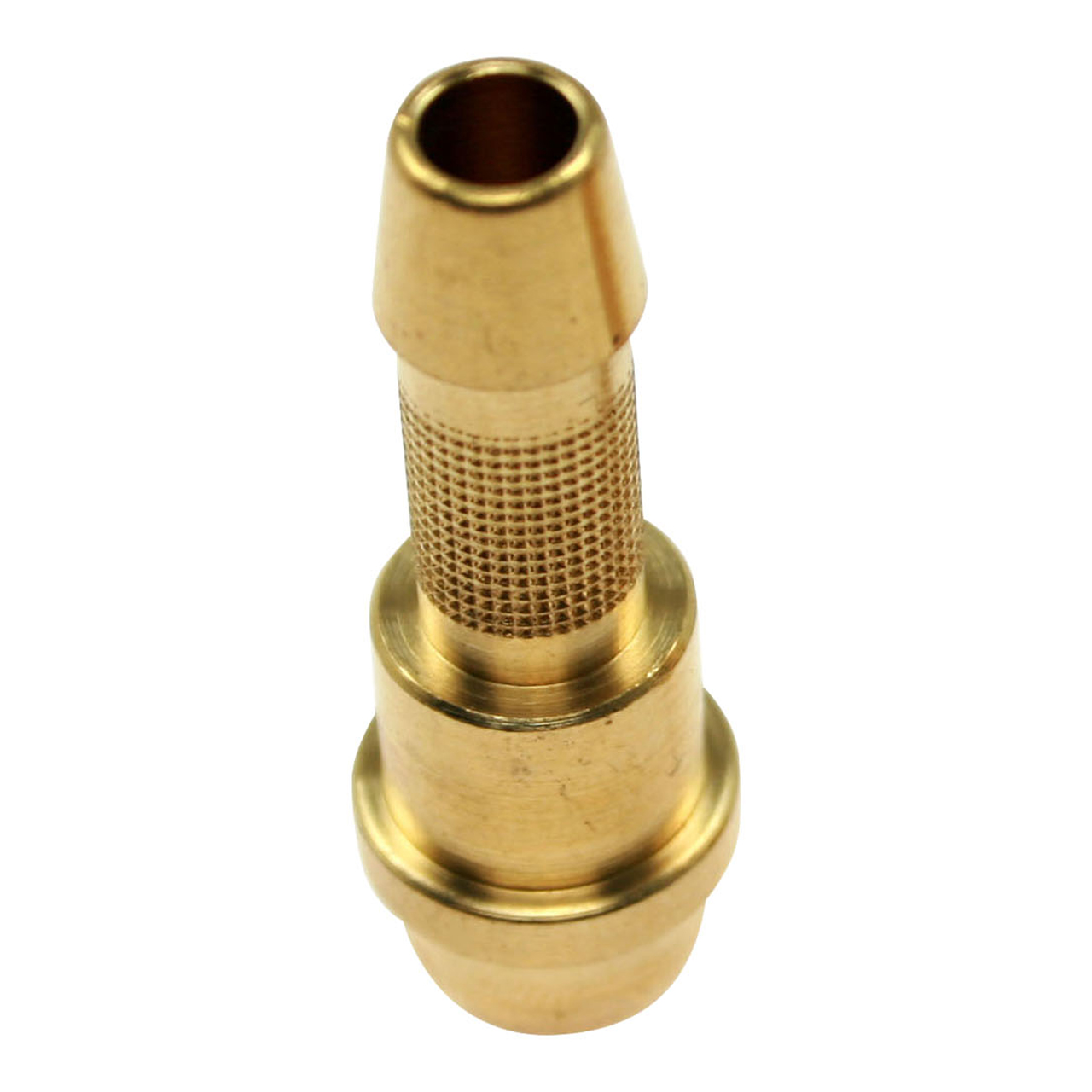 Schlauchtülle aus Messing für Schläuche mit einem Innendurchmesser von 5,0 mm gemäß DIN 8542 - EN 560. Die Tülle ist passend für eine Überwurfmutter mit 1/4" Innengewinde und ist 33,0 mm lang.
