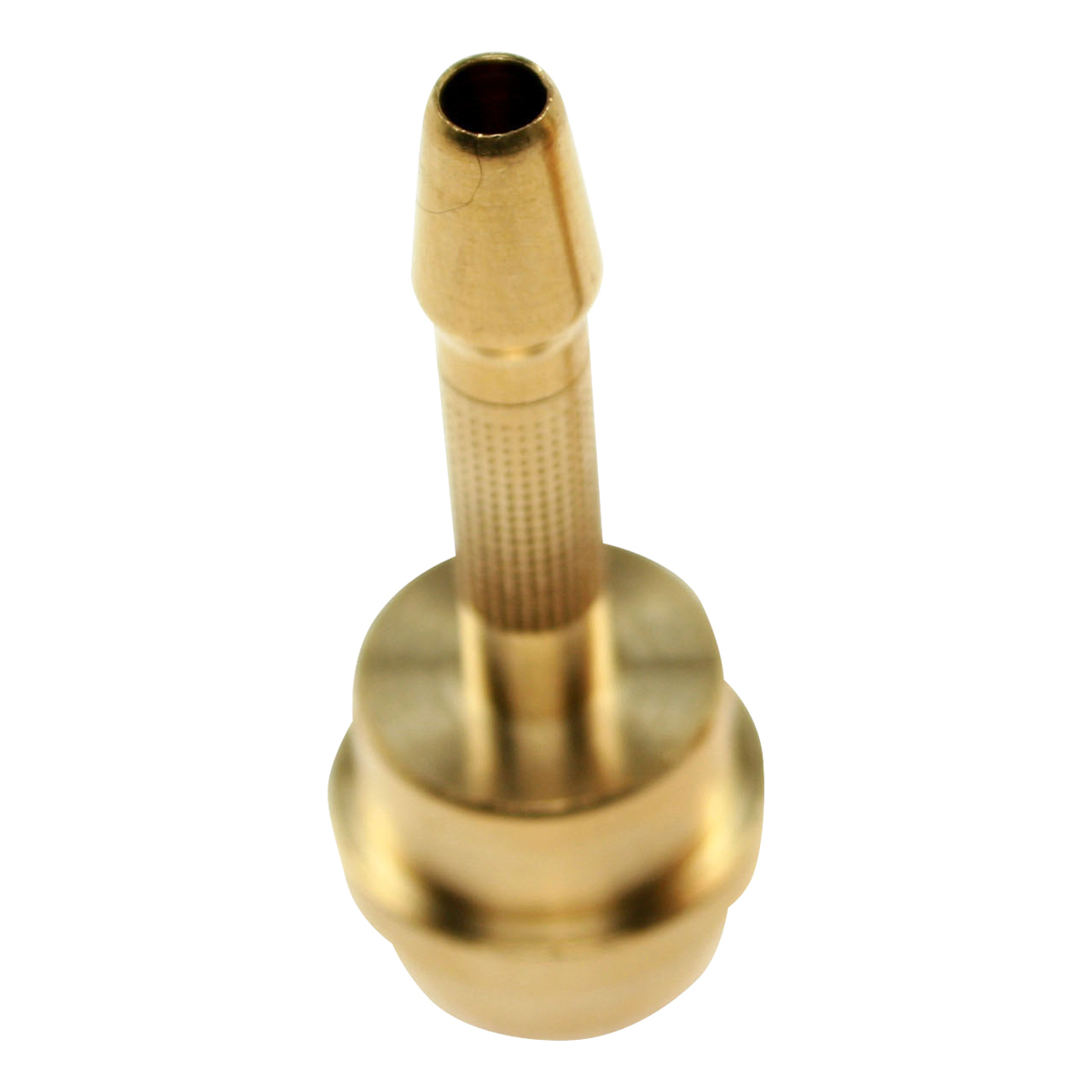 Schlauchtülle aus Messing für Schläuche mit einem Innendurchmesser von 4,0 mm gemäß DIN 8542 - EN 560. Die Tülle ist passend für eine Überwurfmutter mit 3/8" Innengewinde und ist 33,0 mm lang.