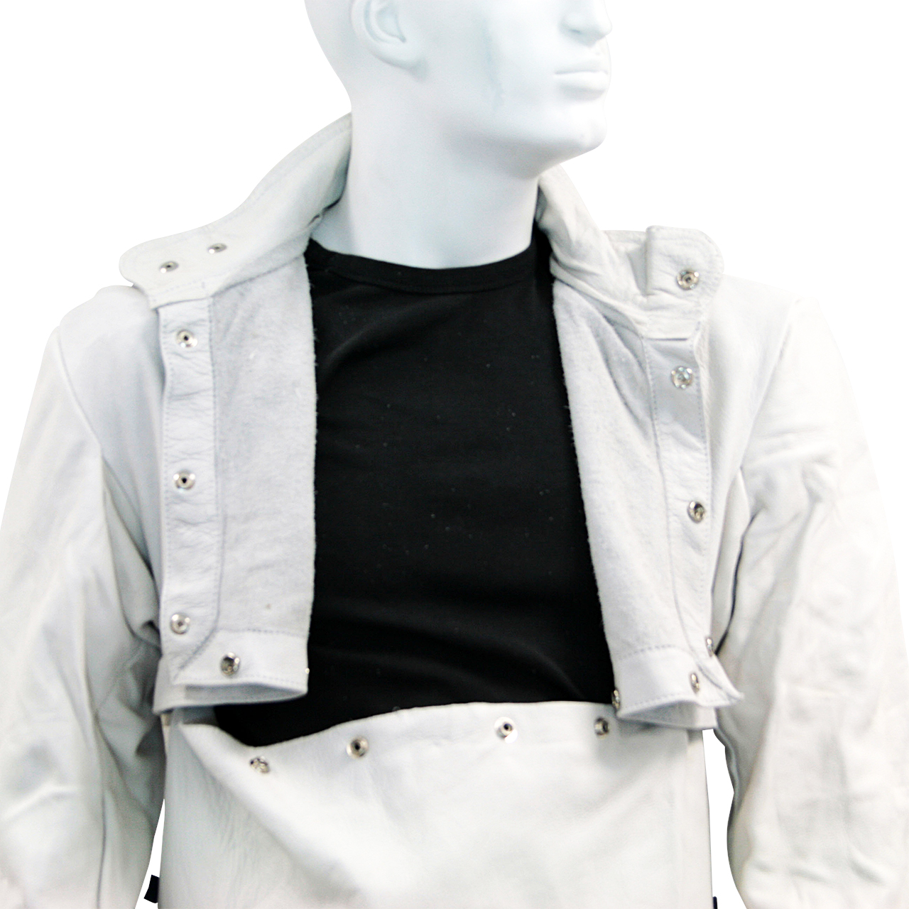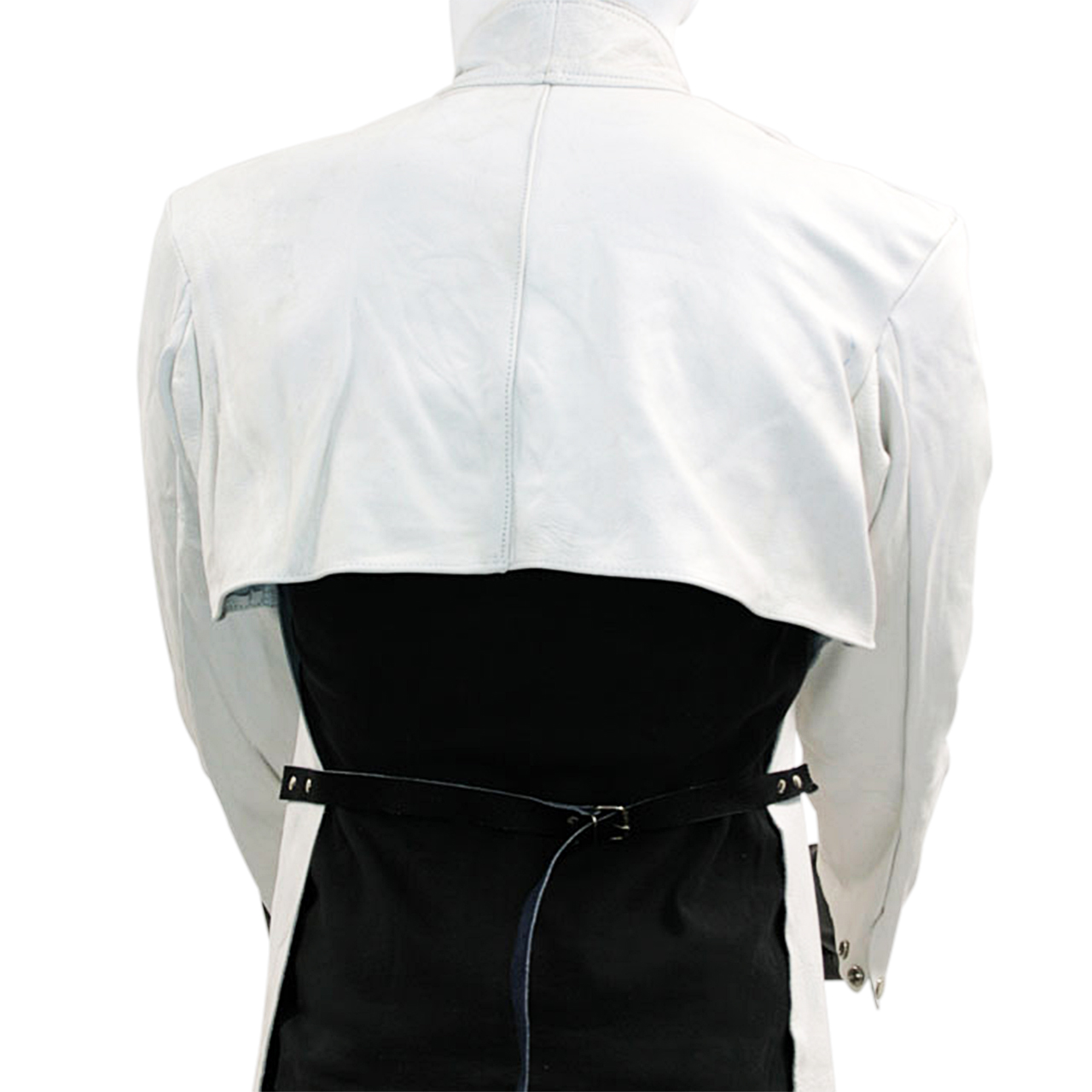 Knielange Jacke mit Druckknöpfen und abknöpfbarem Schurz.