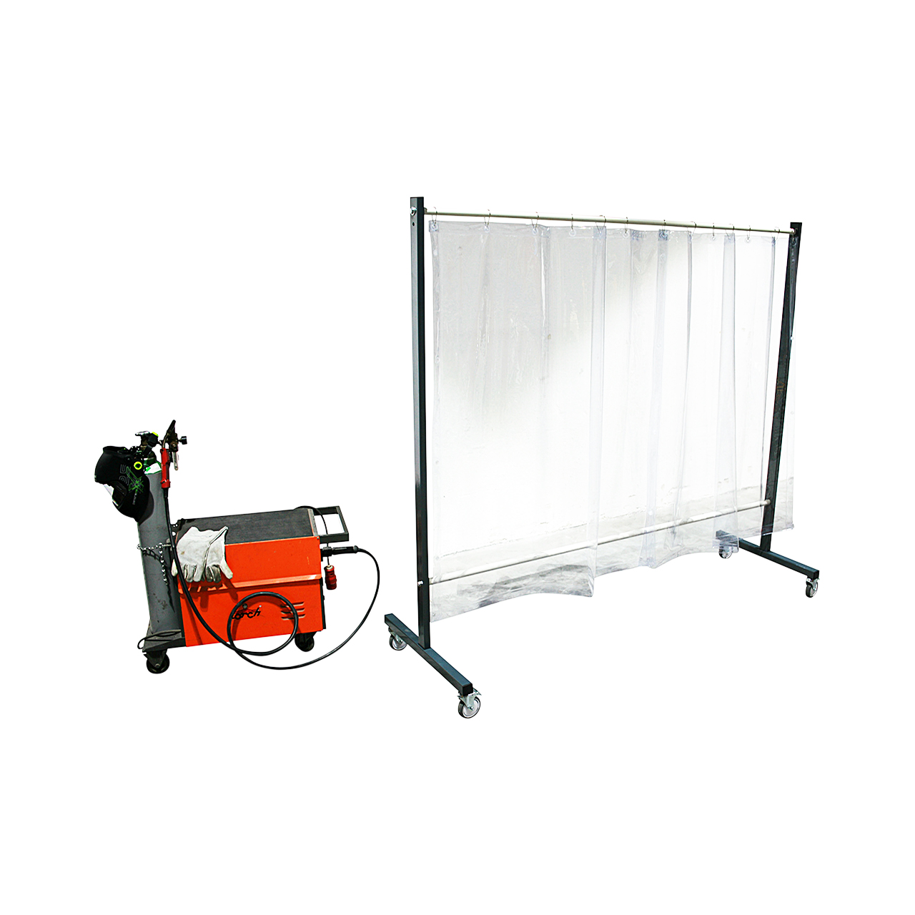 SST3 Schutzwand, 2,0 x 2,15 m, fahrbar, mit Vorhang 0,4 mm, 1,60 m lang, klar