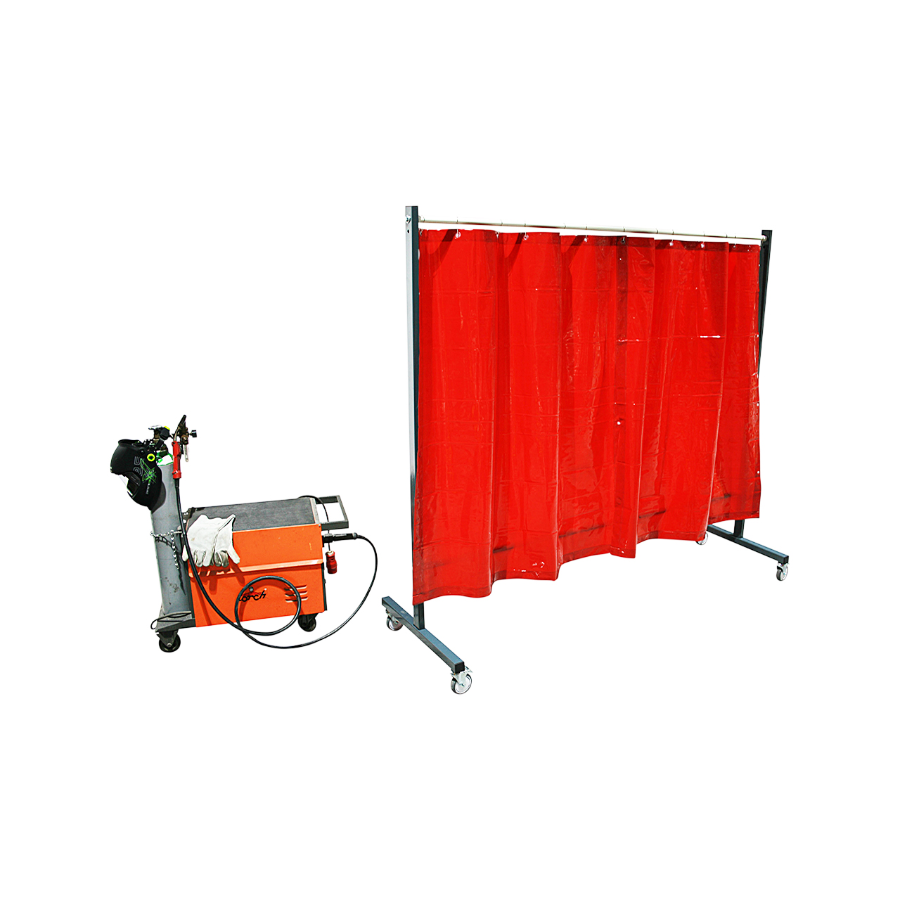 SST3 Schutzwand, 2 x 2,15 m, fahrbar, mit Vorhang 0,4 mm, 1,60 m lang, rot R4